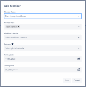 Fill in the fields: team member, role, workload calendar.