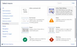 2. Find and select a macro with the name “Inline Table Editing” in the “Formatting” category: