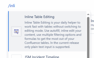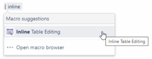 Type / and the beginning of the macro name (“Inline Table Editing”), to see a list of suggested macros.