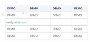 The user is able to add/remove or re-order rows, using the “insert row below”, “remove row” or “move row” options. Drag the row using these icons. These icons are available for use in all rows in the table, except the header row. It is not possible to delete or move the header row.