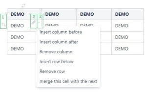 Also, the user is able to merge cells using the “merge this and next cell” option. This option is available to all cells in the table, except the cells in the last column.