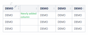The user is able to add/remove columns using the “insert column before”, “insert column after”, and “remove column” options. These options are available to be used in any cell in the table.