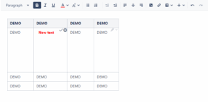Besides the ability to insert any new content, the user can use the rich text editor. It allows the user to format the text or to put macros inside the table as shown below: