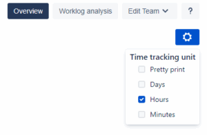There are multiple time tracking formats, that are available in the top right corner. You can switch between different time tracking units to see the data in hours, minutes, days, and pretty print format.