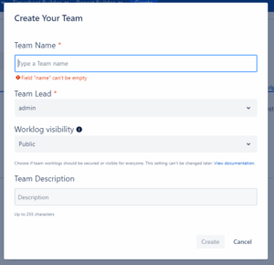 Click “Create” to create the team or click “Cancel” to discard the process