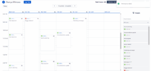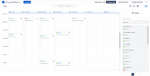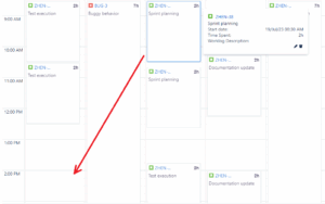 On the calendar view, you can book time multiple ways: by clicking on any cell of any day in the calendar, by dragging and dropping an issue from the Issues panel, or by clicking on the “Log time”-button at the top of the page.