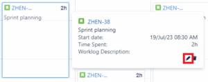 To edit the start time or start day of an existing worklog, you can simply drag and drop a worklog into a new day or new time slot.